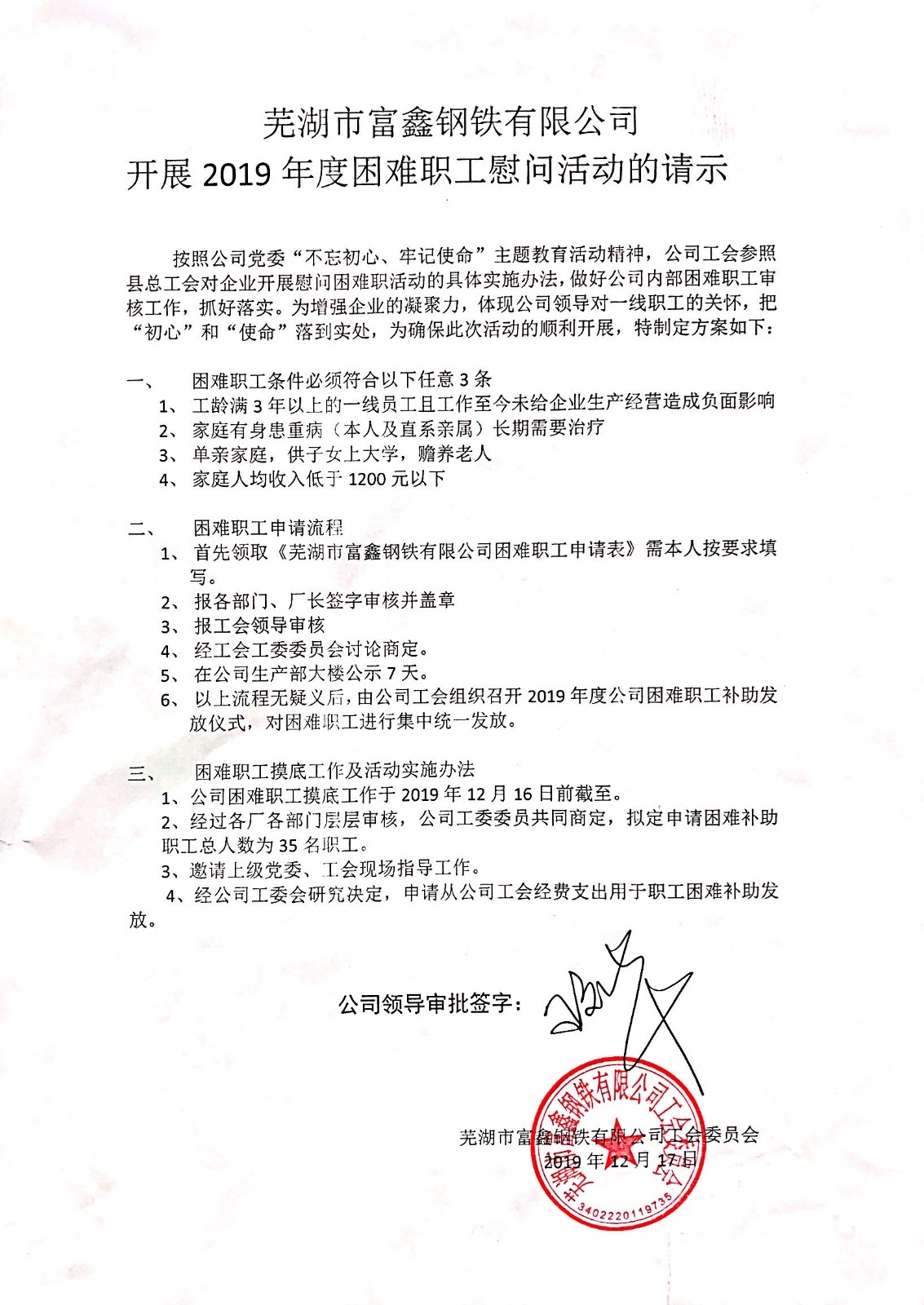 2020年春節(jié)將至,為讓困難職工度過(guò)一個(gè)溫暖祥和的春節(jié),1月7日上午,公司工會(huì)組織召開(kāi)...